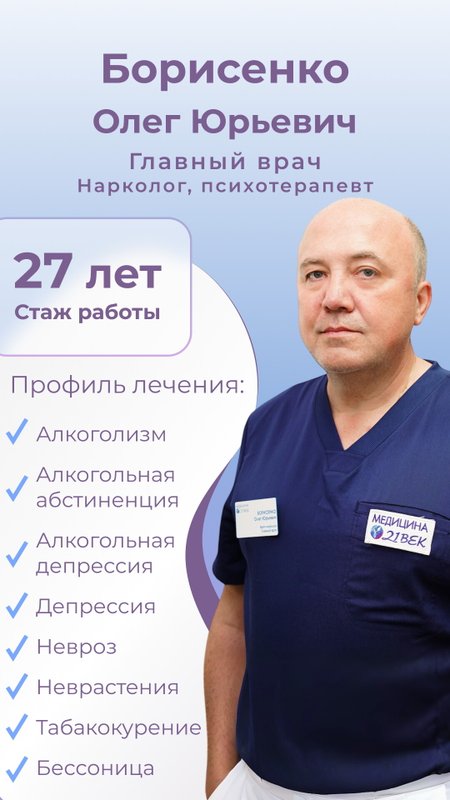 Я прошёл курс в Медицина 21 век год назад. Результат отличный, зависимость ушла, вернулась дисциплина и желание планировать жизнь. Благодарен врачам за их чуткость и профессионализм!